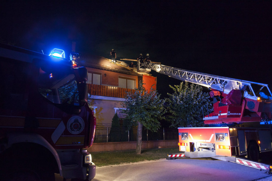 A főváros XXII. kerületében egy családi ház tetejébe villám csapott és kigyulladt, míg a X. kerületben egy uszoda tetejét bontotta meg a szél.