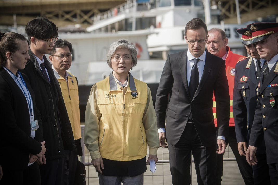Szijjártó Péter külgazdasági és külügyminiszter, valamint Kang Kjung Vha dél-koreai külügyminiszter pénteken megtekintette a szerdai dunai hajóbaleset helyszínét.