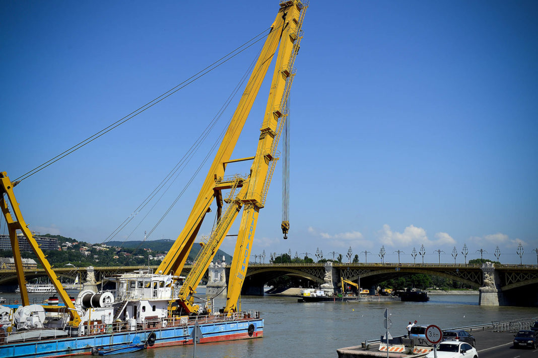 Jasenszky Nándor elmondta, hogy a négy bekötési ponton az úgynevezett befűző köteleket átvezették, az egyik oldalon a kiemelésben résztvevő bárkához rögzítették. A másik bárka, ahova a kötelek másik végét erősítik majd, most foglalja el a helyét – ismertette a részleteket.