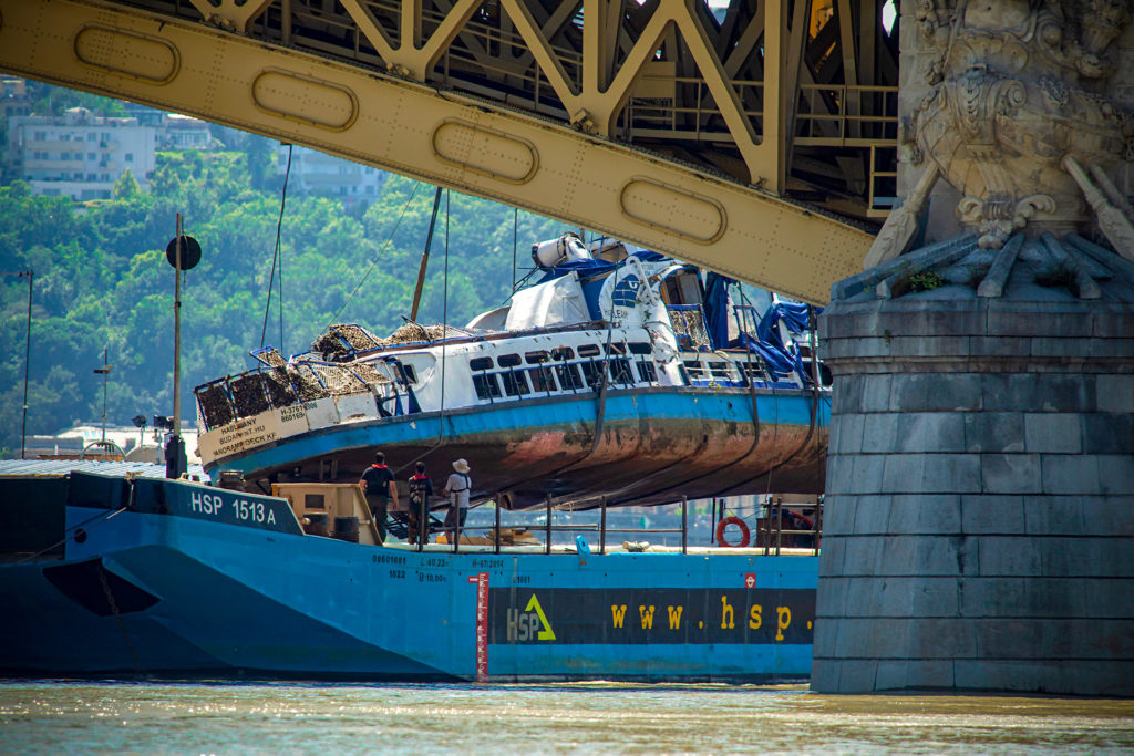 Hétórás mentés után a terveknek megfelelően sikeresen kiemelték a május 29-ei balesetben elsüllyedt Hableány turistahajót kedden Budapesten, a Margit hídnál. A hajót egy uszályra helyezték, amely várhatóan a csepeli szabadkikötőbe szállítja a járművet.
