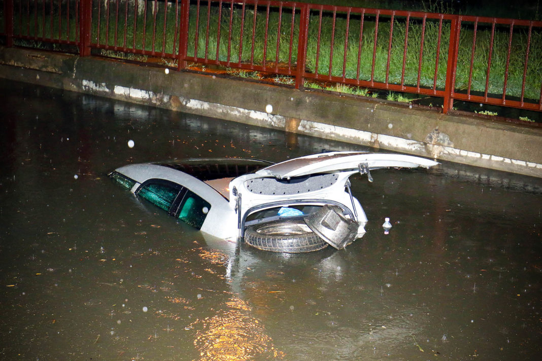 Felhőszakadás után három személygépkocsi merült el az esővízben szerda este egy szolnoki aluljáróban, az autók tetejére menekült utasokat a tűzoltók helyezték biztonságba – tájékoztatta a Jász-Nagykun-Szolnok Megyei Katasztrófavédelmi Igazgatóság szóvivője csütörtökön az MTI-t.