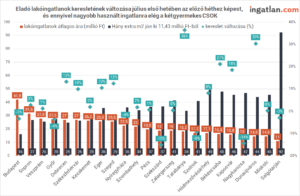 Fordulat látható a lakáspiacon, legalábbis a vidéki nagyvárosokban komolyabb élénkülés ment végbe, mint Budapesten – derül ki az ingatlan.com és a money.hu közös elemzéséből, amely többek között azt vizsgálta, hogy június végéhez képest július első hetében mennyivel nőtt a kereslet a lakások iránti kereslet Budapesten és több mint húsz vidéki nagyvárosokban.
