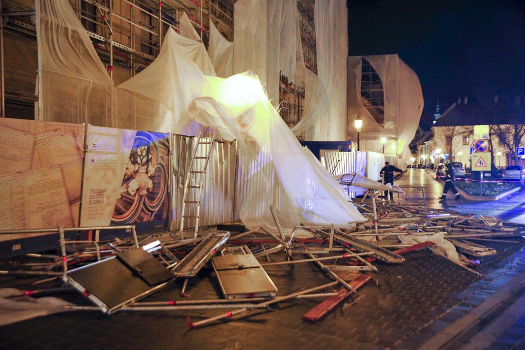 Megbontotta a szél a Kulturális Örökségvédelmi Hivatal előtti állványzatot az I. kerületben – közölte a Fővárosi Katasztrófavédelmi Igazgatóság helyettes szóvivője hétfő este az MTI-vel.