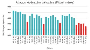 Ebben a helyzetben néztük meg, hogy a legáltalánosabb paraméter, a napi lépésszám tekintetében a Fitpuliban milyen tendenciát látunk. Az alábbi grafikonon feltüntettük felhasználóink napi átlagos lépésszámának alakulását az elmúlt hetekben.