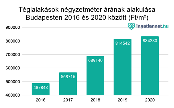 Míg 2016-ban 488 ezer forintba került egy négyzetméter, addig ez 2019-re majdhogynem megduplázódott, ugyanis 815 ezer forintos négyzetméter árak voltak ezévben átlagosan. Így idén az eddigi 19 ezer forintos növekedés a fővárosi téglalakások négyzetméter árának tekintetében igen jónak számít.
