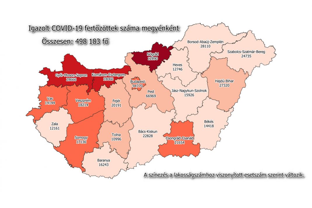 A kormányzati portálon azt írták: 498 183-ra nőtt a Magyarországon azonosított fertőzöttek száma. Az elhunytaké 16 627-re emelkedett, a gyógyultak száma 346 904.