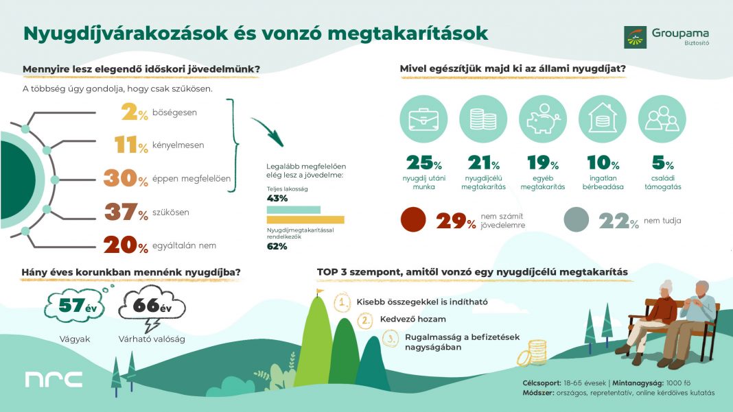 Mások nyugdíjcélú megtakarításaik, illetve egyéb felhalmozásaik gyümölcsét szeretnék majd élvezni: a magyarok 21 százaléka nyugdíjcélú, míg 19 százalékuk egyéb megtakarításból tervezi kiegészíteni állami nyugdíját.